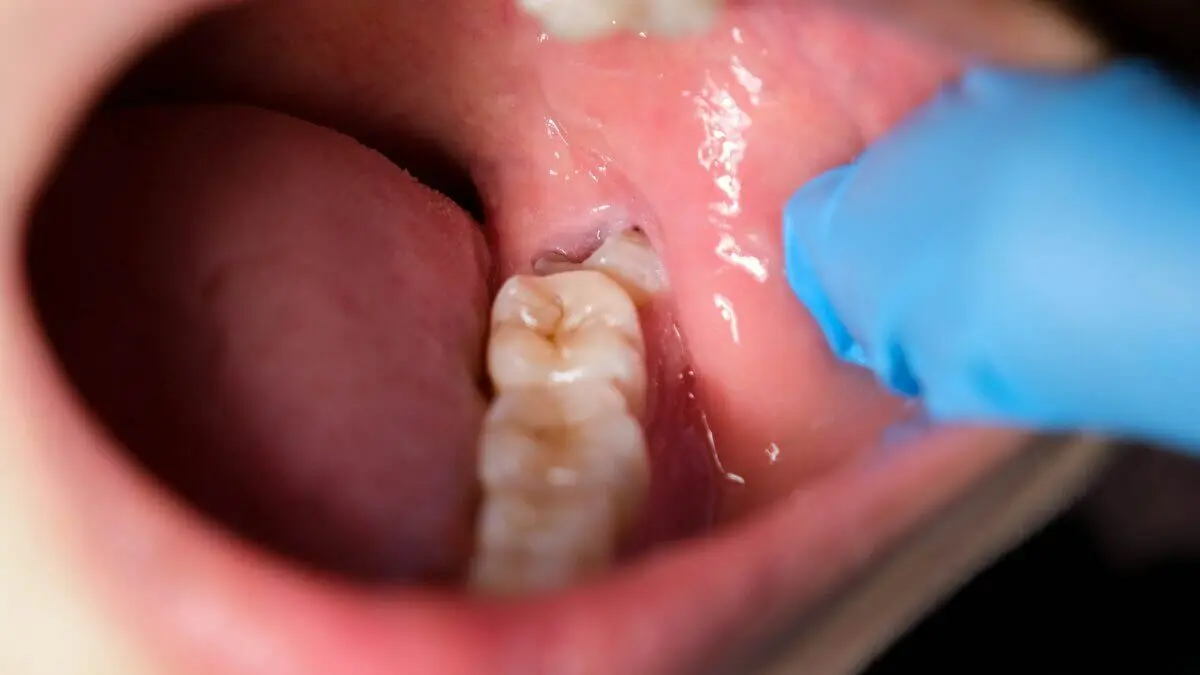 La muela intenta salir, pero no tiene espacio suficiente y queda cubierta por un colgajo de encía. Esa zona cerrada retiene restos y bacterias que irritan el tejido y desencadenan la infección.
